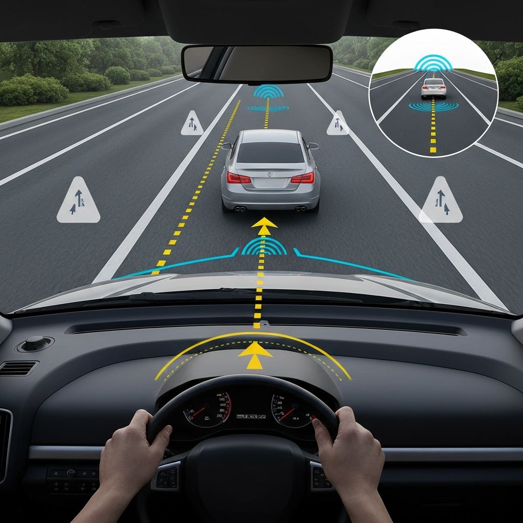 Visual, auditory, and haptic warnings when unintended lane departure detected